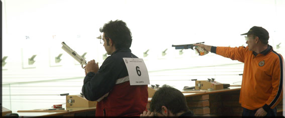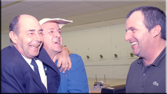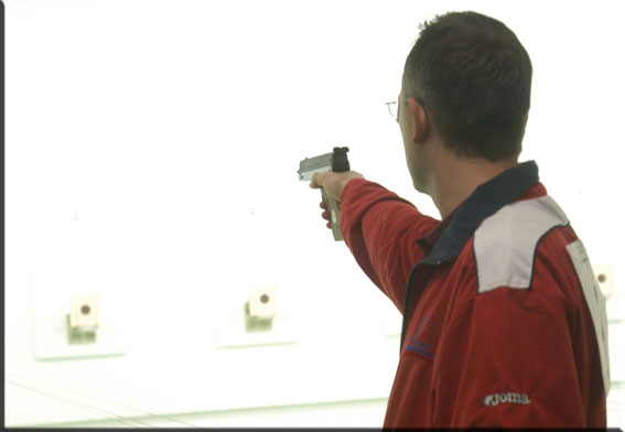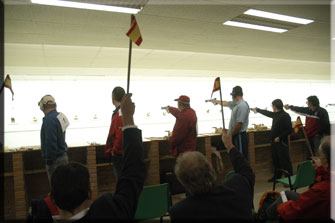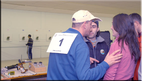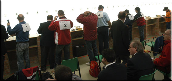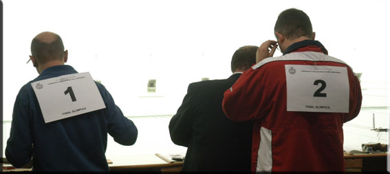 A las 18:45 h. del día 7 de Diciembre de 2006, se celebró la Final Olímpica de Pistola Seniors. Ésta ha sido la primera Final Olímpica que se celebra en este Campeonato de España de armas Neumáticas. La emoción había subido de tono al conocer la igualdad que tenían los 5 primeros clasificados, el primero había conseguido 576, el segundo 575, el tercero 573 y el cuarto y quinto estaban empatados a 572, por lo que en la final podía suceder cualquier cosa. La atención se centró especialmente en el segundo clasificado, Miguel Salvador Jiménez Carpena de la Federación de Castilla La Mancha que con una pistola económica de la marca Gamo modelo ... consiguió 575 puntos y en la final superó en 9 décimas a Antonio Emilio Macho Arnáiz que fué quien ganó la competición, tan sólo dos décimas le faltó para quedar en primer lugar en este Campeonato de España Justo y merecido tiene el triunfo quien lo hizo, Antonio Emilio Macho Arnáiz. Desde aquí nuestra enhorabuena!!. |